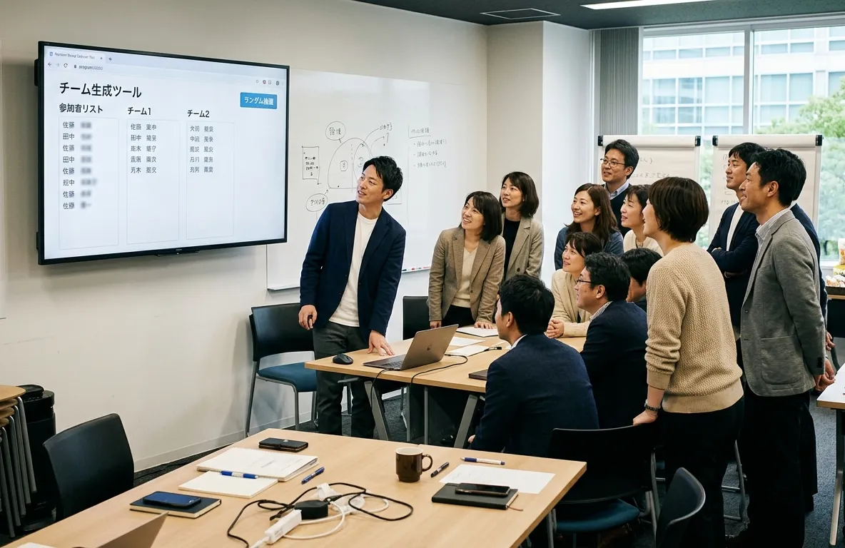スポーツ・ワークショップ・クラスのチーム分けをランダム抽選ツールで公平に。山田ツールなら完全無料・登録不要でグループ分けが簡単にできます。